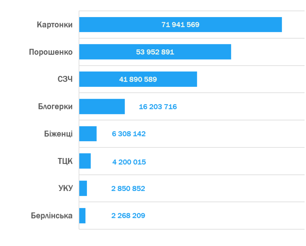 Проросійські пабліки, що працюють на українську авдиторію, були активно представлені як мінімум у 6 з 8 скандальних тем.